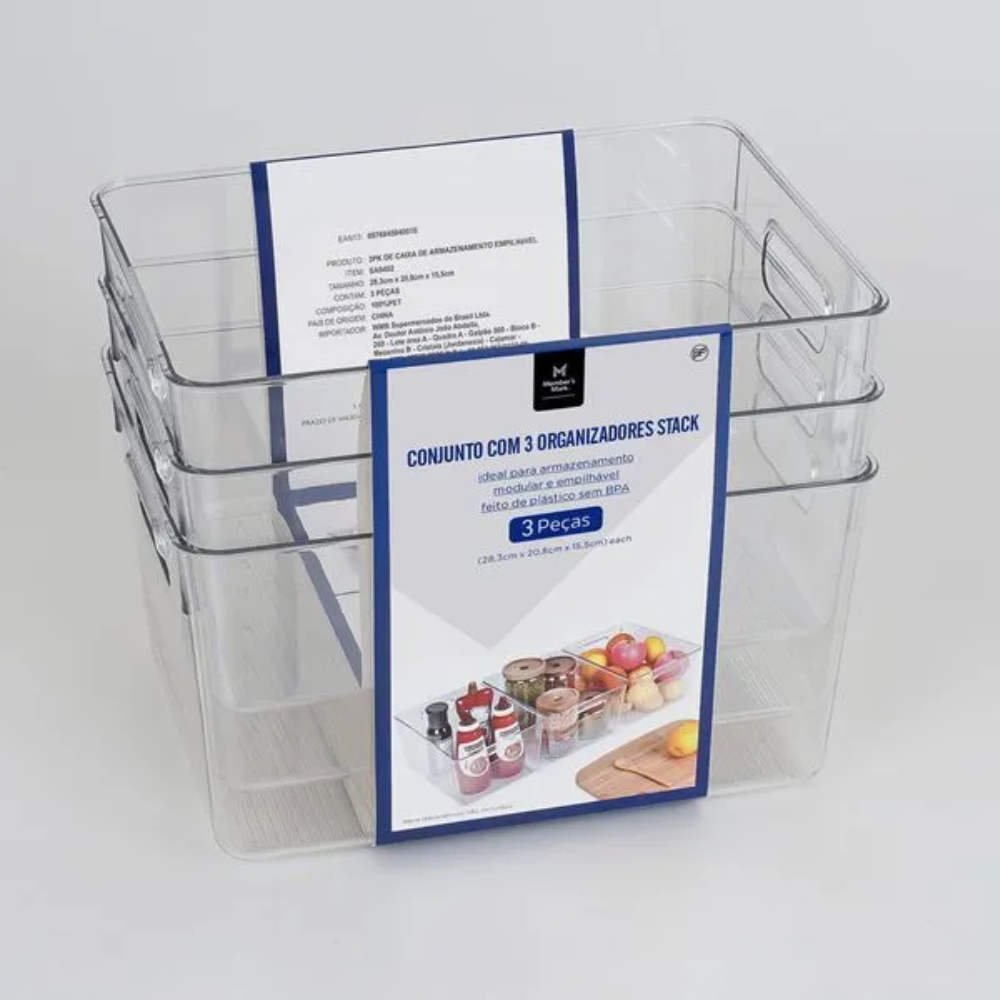 Organizadores Empilháveis Member’s Mark 3 Peças 28,3x20,8x15,5cm – Empilháveis, Plástico Livre de BPA